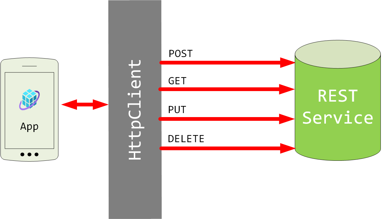 HttpClient is a .NET class that an app can use to send HTTP requests and receive HTTP responses from a REST web service. A set of URIs identifies the resources that the web service exposes. A URI combines the address of the web service with the name of a resource available at that address.