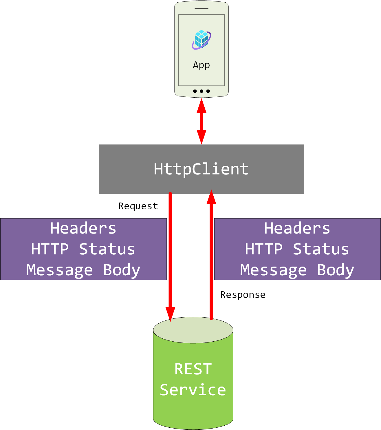 HttpClientobject. AnHttpResponseMessageis returned that contains information such as the status code and information returned by the web service.